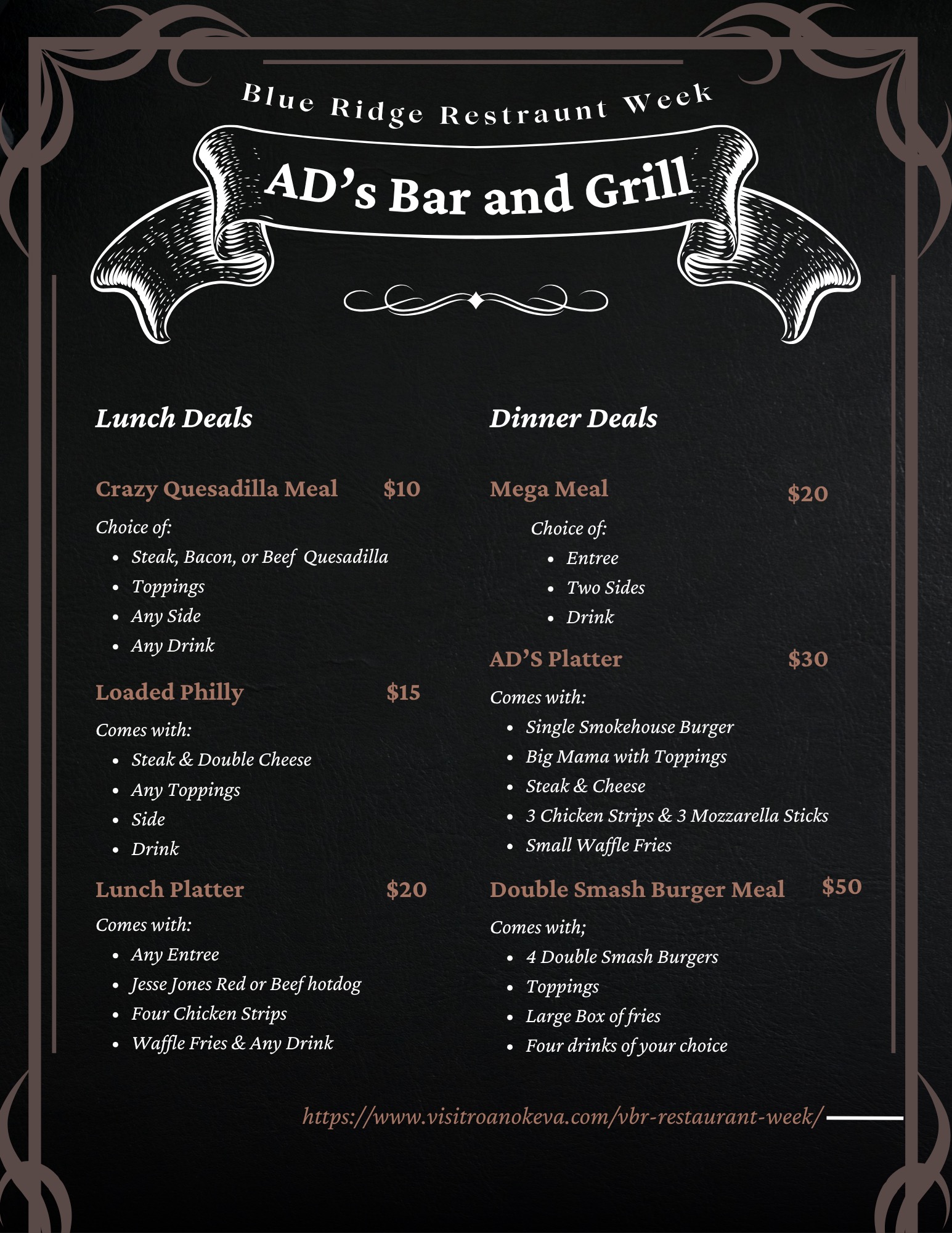 It's time for a culinary metro mountain adventure in the Roanoke Region in Virginia's Blue Ridge! The VBR Restaurant Week will feature exciting menus and specials from participating restaurants throughout Virginia's Blue Ridge, which includes the cities of Roanoke and Salem, the towns of Vinton, Rocky Mount, and Boones Mill, and the counties of Botetourt, Franklin, and Roanoke.